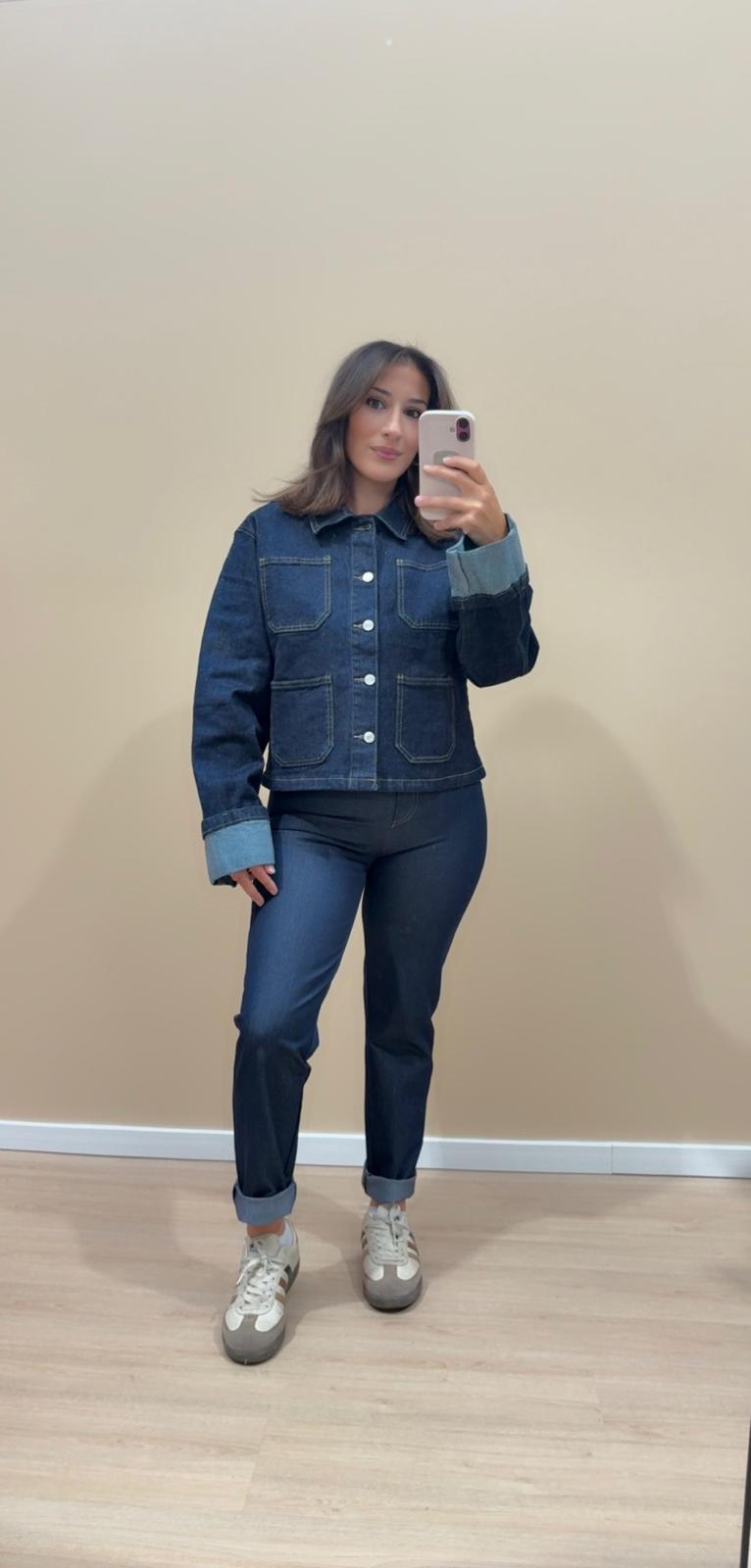 Veste en jeans à revers + poche